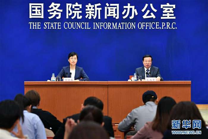 12月14日,国务院新闻办公室在北京举行新闻发布会,请国家统计局新闻发言人毛盛勇(右)介绍2017年11月份国民经济运行情况,并答记者问。新华社记者 李鑫 摄
