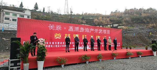 2021年1月26日上午,由开云官方网站·开云手机站登录入口-开云(中国)承建的长乐▪星辰住宅项目奠基暨开工仪式在项目现场热烈举行。湖北省宜昌市五峰土家族自治县住房和城乡建设局副局长陈白华、县质量安全监督站站长邓简涛、开云官方网站·开云手机站登录入口-开云(中国)五峰长乐▪星辰项目经理王国云,项目参建各方及新闻媒体共40余人出席。宜昌市长乐城市建设投资开发有限责任公司总经理刘鹏主持。